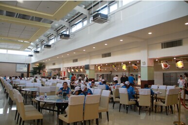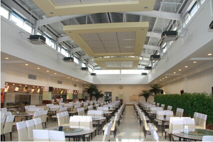 遼寧省第九屆大學(xué)生田徑運(yùn)動(dòng)會(huì)也在沈陽農(nóng)業(yè)大學(xué)剛剛落下帷幕,盛會(huì)期間,學(xué)校學(xué)生五食堂的到處是大堂經(jīng)理?xiàng)钤旅β档纳碛啊刻熳钌僖⻊?wù)400多名運(yùn)動(dòng)員。不過,與以往餐廳內(nèi)汗流浹背的情況不同的是,現(xiàn)在餐廳內(nèi)非常涼爽,學(xué)生和運(yùn)動(dòng)員們也更愿意光顧。而這,也正是因?yàn)樾虏蛷d新安裝的中央空調(diào)所帶來的舒適環(huán)境。 “以前夏天在餐廳里工作或者吃飯,總會(huì)汗流浹背,這一天幾乎是蒸了個(gè)桑拿,全身的衣服都會(huì)濕透!睏钤赂嬖V記者,自從今年夏天,新的學(xué)生五食堂投入使用后,這樣的局面得到了改善。由于她服務(wù)的餐廳位于三樓,是整個(gè)食堂內(nèi)最豪華的餐廳,所以,這次運(yùn)動(dòng)會(huì)期間,也就吸引了更多的學(xué)生和運(yùn)動(dòng)員。 記者剛踏進(jìn)學(xué)生五食堂的三樓內(nèi),就能感受到一股清涼,與室外炎熱的環(huán)境形成鮮明對比,即使餐廳內(nèi)坐滿了運(yùn)動(dòng)員,也沒有喧雜、燥熱的感覺。“由于我們只提供午餐和晚餐,所以每次上午剛開門的時(shí)候,室內(nèi)的溫度30多度。但是,只要打開中央空調(diào)后,立馬能感受到?jīng)鏊?分鐘內(nèi)溫度就能降到22℃左右!睏钤抡f道。