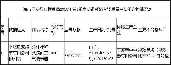 10日,上海市工商行政管理局在其官網(wǎng)公布空調(diào)質(zhì)量抽檢情況,標(biāo)稱(chēng)商標(biāo)為“KEG”的一個(gè)批次分體掛壁式房間空氣調(diào)節(jié)器被檢出不合格。 近期,上海市工商局集中組織力量對(duì)徐匯區(qū)、楊浦區(qū)、嘉定區(qū)、松江區(qū)等部分區(qū)域19家超市、1家商場(chǎng)銷(xiāo)售的20個(gè)批次各種類(lèi)型掛壁式、落地式、定頻、變頻等空調(diào)進(jìn)行了市場(chǎng)檢查和質(zhì)量抽檢。經(jīng)檢測(cè),有1個(gè)批次不合格,不合格項(xiàng)目是能效等級(jí)(能效比)和制冷量。 抽檢發(fā)現(xiàn),上海聯(lián)家超市有限公司柳州店銷(xiāo)售的標(biāo)稱(chēng)由寧波韓電電器有限公司生產(chǎn)的“KFG”牌分體掛壁式房間空氣調(diào)節(jié)器(型號(hào)規(guī)格:KFRD-35GW/HDF1;生產(chǎn)日期或批號(hào):內(nèi)機(jī)20150409、外機(jī)20150406),能效等級(jí)實(shí)測(cè)為2.45(w/w)(企業(yè)標(biāo)稱(chēng)能效等級(jí)為3級(jí),標(biāo)準(zhǔn)要求應(yīng)≥3.20(w/w))。 據(jù)介紹,空調(diào)能效等級(jí)分成1、2、3三個(gè)等級(jí)。能效等級(jí)越高(1級(jí)最高),能耗越少,越省電。通過(guò)能效等級(jí)高低,消費(fèi)者可以清楚的了解能耗情況。虛標(biāo)能效等級(jí),容易誤導(dǎo)消費(fèi)者,違背了消費(fèi)者購(gòu)買(mǎi)節(jié)能產(chǎn)品的初衷。 抽檢還發(fā)現(xiàn),該批次空氣調(diào)節(jié)器制冷量實(shí)測(cè)為80.1%(標(biāo)準(zhǔn)要求實(shí)測(cè)制冷量不小于額定制冷量的95%(額定制冷量為3500W))。制冷量即制冷能力,該指標(biāo)不合格,雖然不會(huì)產(chǎn)生安全隱患,但降低了空調(diào)的使用效果,影響消費(fèi)者正常使用。 根據(jù)抽檢結(jié)果,工商部門(mén)已責(zé)令相關(guān)經(jīng)營(yíng)者立即下架并停止銷(xiāo)售不合格商品,依法對(duì)銷(xiāo)售不合格商品的經(jīng)營(yíng)者立案調(diào)查。同時(shí),工商部門(mén)提醒消費(fèi)者在選購(gòu)空調(diào)時(shí)要注意以下幾點(diǎn): 一、空調(diào)是國(guó)家3C強(qiáng)制認(rèn)證產(chǎn)品,所有在售商品均應(yīng)在顯著位置加貼3C認(rèn)證標(biāo)志。消費(fèi)者購(gòu)買(mǎi)時(shí)應(yīng)注意查看3C標(biāo)志,并選擇售后服務(wù)完善的品牌企業(yè) 二、空調(diào)的能效等級(jí)分為三級(jí),其中,1級(jí)最節(jié)能,3級(jí)最耗電。消費(fèi)者購(gòu)買(mǎi)空調(diào)時(shí),要認(rèn)準(zhǔn)能效標(biāo)識(shí)和標(biāo)注的等級(jí)。