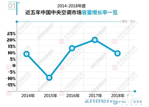 2018年,國(guó)民經(jīng)濟(jì)運(yùn)行保持在合理區(qū)間,總體平穩(wěn)、穩(wěn)中有進(jìn)。國(guó)家統(tǒng)計(jì)局?jǐn)?shù)據(jù)顯示,初步核算,全年國(guó)內(nèi)生產(chǎn)總值900309億元,按可比價(jià)格計(jì)算,比上年增長(zhǎng)6.6%,實(shí)現(xiàn)了6.5%左右的預(yù)期發(fā)展目標(biāo)。分季度看,一季度同比增長(zhǎng)6.8%,二季度增長(zhǎng)6.7%,三季度增長(zhǎng)6.5%,四季度增長(zhǎng)6.4%。分產(chǎn)業(yè)看,第一產(chǎn)業(yè)增加值64734億元,比上年增長(zhǎng)3.5%;第二產(chǎn)業(yè)增加值366001億元,增長(zhǎng)5.8%;第三產(chǎn)業(yè)增加值469575億元,增長(zhǎng)7.6%。 與此同時(shí),我們也要看到,經(jīng)濟(jì)運(yùn)行穩(wěn)中有變、變中有憂,外部環(huán)境復(fù)雜嚴(yán)峻,經(jīng)濟(jì)面臨下行壓力。對(duì)于國(guó)內(nèi)中央空調(diào)行業(yè),2018年最明顯的一個(gè)變化就是家裝零售行業(yè)銷售的不景氣導(dǎo)致家裝零售市場(chǎng)的增長(zhǎng)放緩至個(gè)位數(shù),國(guó)內(nèi)中央空調(diào)市場(chǎng)整體容量及增長(zhǎng)率也受到影響。根據(jù)艾肯空調(diào)制冷網(wǎng)統(tǒng)計(jì),2018年度中國(guó)中央空調(diào)市場(chǎng)整體容量逼近1000億元,與2017年度接近20%的增長(zhǎng)率相比,2018年度中國(guó)中央空調(diào)市場(chǎng)的增長(zhǎng)率已經(jīng)低于10%。(見圖1)