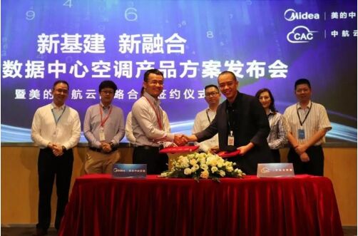 6月19日,“新基建、新融合”新一代數(shù)據(jù)中心空調(diào)產(chǎn)品方案發(fā)布會(huì)暨美的中航云戰(zhàn)略合作簽約儀式于廣東佛山美的總部舉行。會(huì)上發(fā)布了中航云聯(lián)合美的中央空調(diào)研發(fā)的“冰潛”系列陣列式機(jī)房空調(diào),以創(chuàng)新的設(shè)計(jì)和可靠的性能為數(shù)據(jù)中心綠色節(jié)能提供了保障,也為跨行業(yè)融合助力新基建提供了全新的合作范式。
