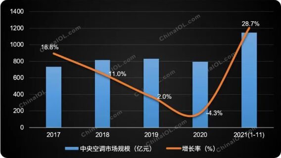 2017-2021年中央空調(diào)市場(chǎng)規(guī)模及增長(zhǎng)趨勢(shì)