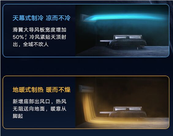 格力星海掛機(jī)空調(diào),作為格力2023年亮相的新品空調(diào)同樣能夠?qū)崿F(xiàn)冷暖分送,有上下兩個出風(fēng)口,擴(kuò)壓角升級至65°,導(dǎo)板寬度增加50%,讓空調(diào)風(fēng)能夠貼墻壁送出。制冷時,導(dǎo)板將冷風(fēng)向上送出,實現(xiàn)“天幕式制冷”,讓房間涼而不冷,制熱時,底部出風(fēng)口讓熱風(fēng)無阻礙地送向地面,腳暖了,入睡就會更簡單,睡夢更香甜。
