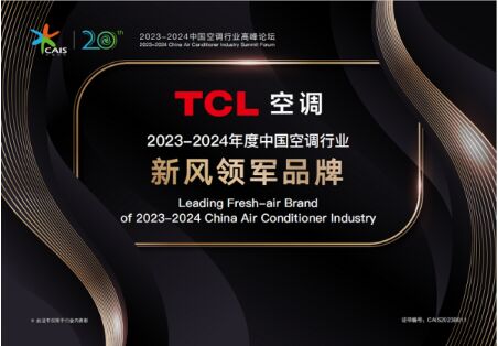 近日,在2023-2024中國空調(diào)行業(yè)高峰論壇上,TCL空調(diào)憑借新風(fēng)賽道的杰出表現(xiàn),一舉斬獲2023-2024年度中國空調(diào)行業(yè)“新風(fēng)領(lǐng)軍品牌”,TCL空調(diào)已三度蟬聯(lián)該獎項。同時,在近日舉辦的“美好生活 健康家--2023健康人居公益發(fā)展大會”上,TCL空調(diào)獲頒“健康人居卓越品牌”獎。TCL空調(diào)屢獲殊榮,也與TCL空調(diào)在技術(shù)創(chuàng)新水平和品牌實力方面的突出表現(xiàn)密切相關(guān)。