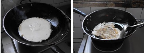 實驗者將調(diào)好的面糊倒入平底鍋,適當加熱后,翻邊。筆者發(fā)現(xiàn)鍋子中心部位的受熱很均勻,煎餅中間沒有部分燒焦部分夾生的現(xiàn)象產(chǎn)生。 第三,聚能圈設計,廢氣更少
