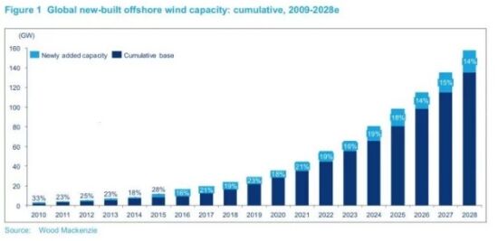 根據(jù)伍德麥肯齊(Wood Mackenzie)的研究,未來十年將是風(fēng)能產(chǎn)業(yè)的新篇章,預(yù)計到2028年,海上風(fēng)電在年度全球風(fēng)能市場中的份額將從去年的10%上升到25%。