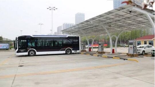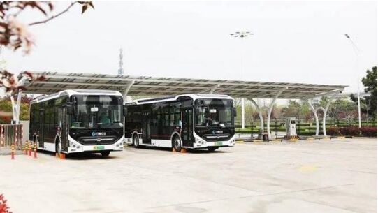 日照游泳館充電站占地398平方米,設(shè)有充電車位14個(gè),可同時(shí)為14臺新能源電動公交車快速充電。充電站雨棚為太陽能光伏板,主要利用半導(dǎo)體界面光生伏特效應(yīng),將光能直接轉(zhuǎn)變?yōu)殡娔埽褂脡勖L達(dá)10年。項(xiàng)目設(shè)計(jì)容量為67千瓦,預(yù)計(jì)年發(fā)電量19.6萬千瓦時(shí),通過接入380V電源并入電網(wǎng),可實(shí)現(xiàn)消納光伏發(fā)電功率、平滑充電負(fù)荷、削峰填谷等功能,有效提升了系統(tǒng)運(yùn)行的經(jīng)濟(jì)性。日照游泳館充電站試運(yùn)營穩(wěn)定后,日照公交能源集團(tuán)將啟動兼?zhèn)涔、儲、充等新型能源綜合服務(wù)功能的社會化充電服務(wù)站建設(shè)工作。