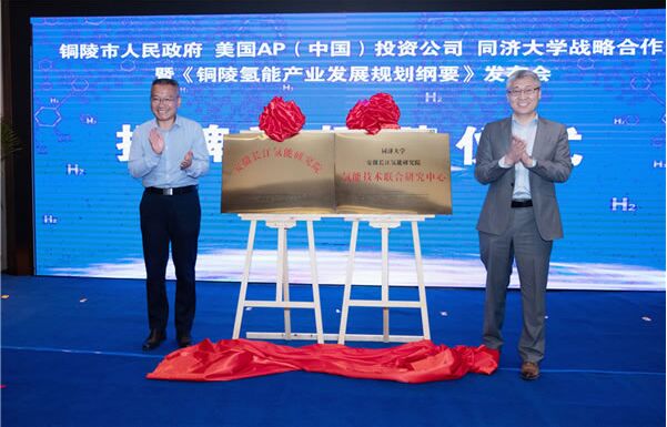 銅陵市委副書記、市長胡啟生,同濟大學燃料電池復合電源研究所所長張存滿共同為“安徽長江氫能研究院”和“氫能技術聯(lián)合研究中心”揭牌