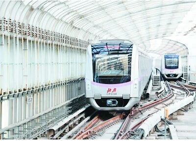 列車駛?cè)氡本┑罔F昌平線沙河高教園站。