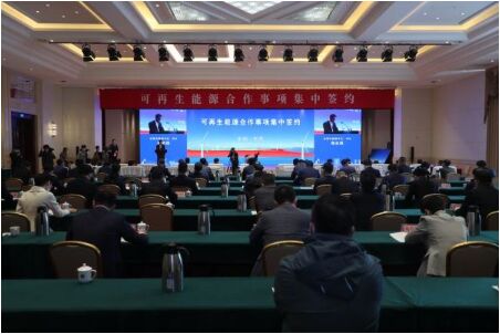 在當(dāng)日舉行的可再生能源合作事項集中簽約儀式上,22個項目集中簽約,其中線下項目16個、線上項目6個,總簽約額353.29億元。