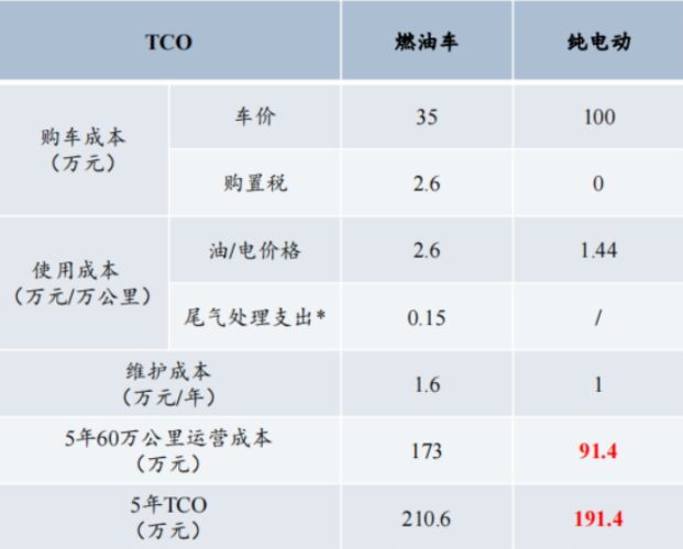 綜合比較之下,在5年60萬公里的情況,純電動商用車比燃油商用車在TCO方面更加具備優(yōu)勢——5年運營成本,純電動可降低47%;5年TCO,純電動可降低約10%。