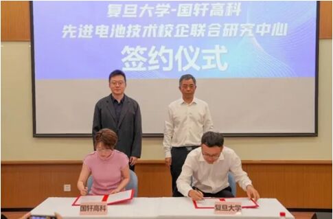 8月9日,復(fù)旦大學(xué)-國(guó)軒高科先進(jìn)電池技術(shù)校企聯(lián)合研究中心(以下簡(jiǎn)稱“聯(lián)合研究中心”)在復(fù)旦大學(xué)江灣校區(qū)正式成立并授牌。根據(jù)約定,雙方圍繞鈉離子電池、隔熱材料、LMFP材料等先進(jìn)材料和電池技術(shù)等項(xiàng)目開(kāi)展聯(lián)合研發(fā)與交流。中國(guó)科學(xué)院院士、復(fù)旦大學(xué)校長(zhǎng)助理兼科研院院長(zhǎng)馬余剛 、國(guó)軒高科國(guó)際業(yè)務(wù)執(zhí)行總裁程騫代表雙方為聯(lián)合研究中心揭牌。中國(guó)科學(xué)院院士、復(fù)旦大學(xué)光電研究院院長(zhǎng)褚君浩表示,這是一次意義深遠(yuǎn)、強(qiáng)強(qiáng)聯(lián)合的合作,期待聯(lián)合研究中心可以成為我國(guó)先進(jìn)電池技術(shù)原始創(chuàng)新策源地和高水平應(yīng)用型人才的"孵化器"。