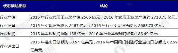 中國(guó)閥門(mén)制造行業(yè)狀態(tài)描述總結(jié)表