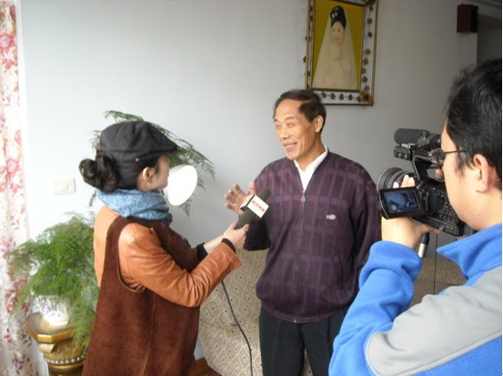 圖為:武漢市百步亭社區(qū)居民接受電視臺現(xiàn)場采訪