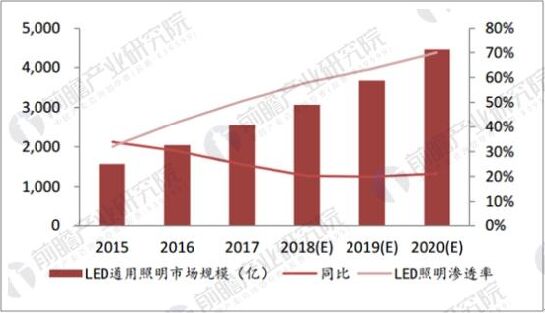 中國LED照明市場規(guī)模及增長率