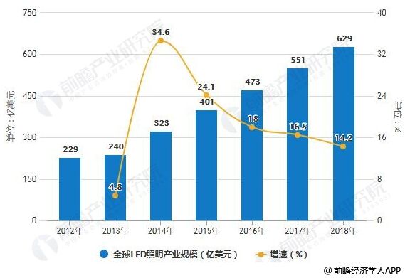 2012-2018年全球LED照明產(chǎn)業(yè)規(guī)模統(tǒng)計(jì)及增長(zhǎng)情況