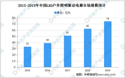 在公路、橋梁、隧道、機場等交通運輸公共基礎設施等具體應用領域,戶外LED照明產(chǎn)品正加速替代傳統(tǒng)照明產(chǎn)品,其更新替換存量市場和新建項目增量市場的需求都呈不斷增長趨勢。因此,戶外LED驅動電源行業(yè)也具有良好的市場需求發(fā)展空間。數(shù)據(jù)顯示,2018年中國戶外LED功能性照明驅動電源產(chǎn)值規(guī)模達到62億元,同比增長21.6%,2015-2018年年均復合增長率為23.4%。
