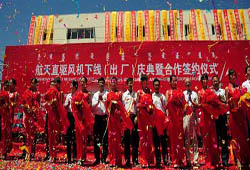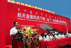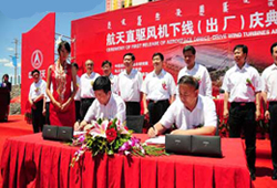 航天直驅(qū)風(fēng)機(jī)下線合作簽約儀式現(xiàn)場(chǎng)。