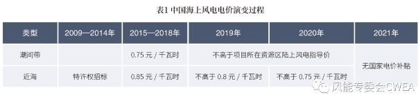 2015年以前,我國海上風電電價政策基本上以特許權(quán)招標為主。隨著2015年12月22日,國家發(fā)展改革委印發(fā)《關(guān)于完善陸上風電光伏發(fā)電上網(wǎng)標桿電價政策的通知》(下稱《通知》),我國開啟了海上風電固定電價周期!锻ㄖ肥状蚊鞔_了海上風電潮間帶與近海項目的上網(wǎng)電價,分別為0.75元/千瓦時、0.85元/千瓦時。