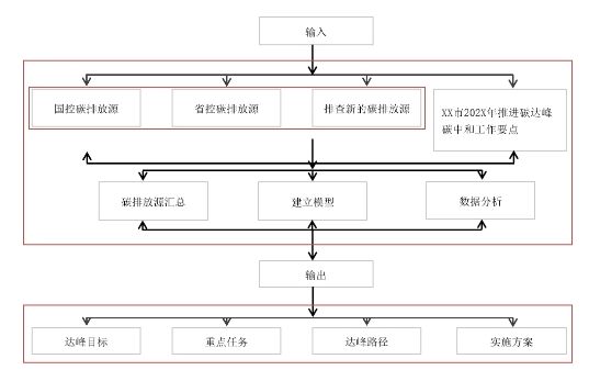 圖2展示了某市碳達峰方案編制的技術路線圖,明確了編制過程中主要的輸入輸出。