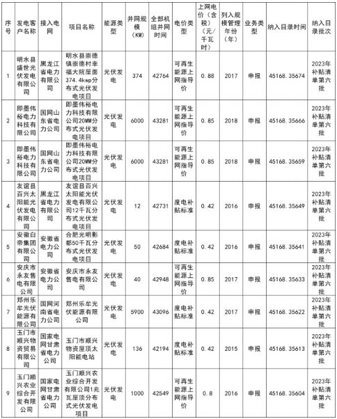 | 國家電網(wǎng)公布2023年第六批可再生能源發(fā)電補(bǔ)貼項目名單 |