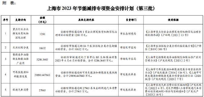 3、按照《上海市支持餐廚廢棄油脂制生物柴油推廣應(yīng)用管理辦法》(滬發(fā)改規(guī)范〔2021〕2號)規(guī)定,安排經(jīng)通過的2家單位B5生物柴油銷售2023年4月-6月補(bǔ)貼資金,合計(jì)5286.3645萬元。