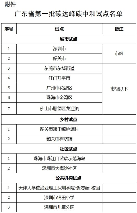廣東省發(fā)展改革委關(guān)于我省第一批碳達(dá)峰碳中和試點(diǎn)名單的公示