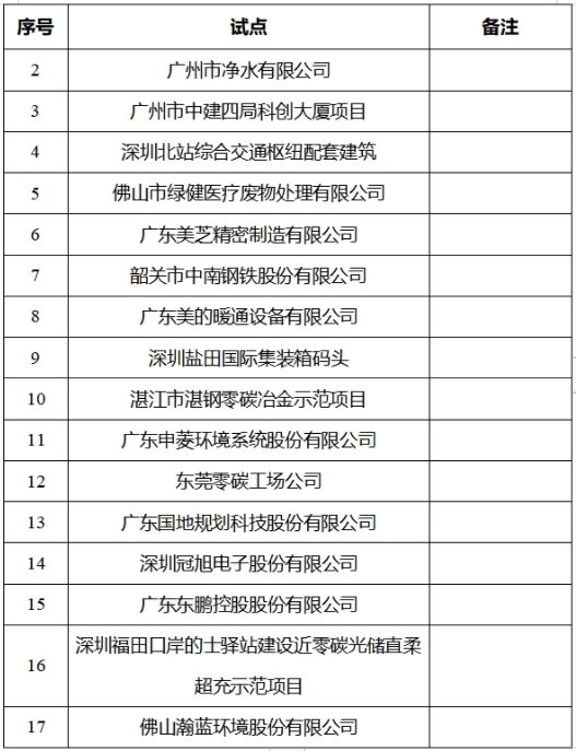 附件:廣東省第一批碳達(dá)峰碳中和試點(diǎn)名單