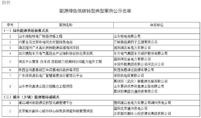 ·國家能源局公示能源綠色低碳轉型典型案例