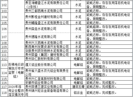 11月12日,貴州省工業(yè)和信息化廳公布2021年貴州省國家工業(yè)專項節(jié)能監(jiān)察結果,118家企業(yè)在列,詳情如下: