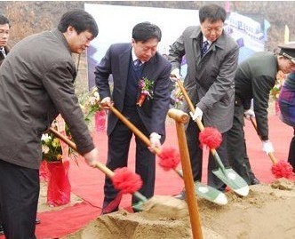 中朝雙方代表分別為望江樓和文岳電站開工剪彩奠基