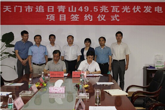 8月8日上午,天門(mén)市追日青山49.5兆瓦光伏電站項(xiàng)目簽約儀式在湖北省天門(mén)市招商局舉行。追日電氣董事長(zhǎng)、總裁陳建國(guó)與天門(mén)市政府負(fù)責(zé)人劉藝新簽署了投資協(xié)議。據(jù)悉,該項(xiàng)目是目前江漢平原最大的光伏電站項(xiàng)目。