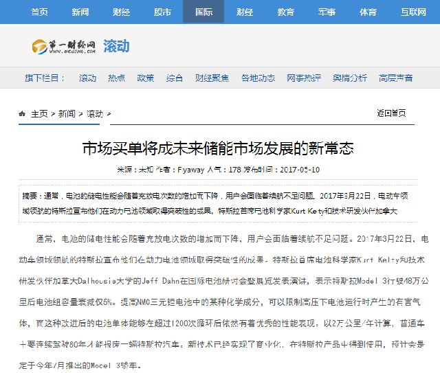 通常,電池的儲電性能會隨著充放電次數(shù)的增加而下降,用戶會面臨著續(xù)航不足問題。2017年3月22日,電動車領(lǐng)域領(lǐng)航的特斯拉宣布他們在動力電池領(lǐng)域取得突破性的成果。特斯拉首席電池科學(xué)家Kurt Kelty和技術(shù)研發(fā)伙伴加拿大Dalhousie大學(xué)的Jeff Dahn在國際電池研討會暨展覽發(fā)表演講,表示特斯拉Model 3行駛48萬公里后電池組容量衰減僅5%。提高NMC三元鋰電池中的某種化學(xué)成分,可以限制高壓下電池運(yùn)行時產(chǎn)生的有害氣體,而這種改進(jìn)后的電池單體能夠在超過1200次循環(huán)后依然有著優(yōu)秀的性能表現(xiàn)。以2萬公里/年計(jì)算,普通車主要連續(xù)駕駛80年才能報(bào)廢一輛特斯拉汽車。新技術(shù)已經(jīng)實(shí)現(xiàn)了商業(yè)化,在特斯拉產(chǎn)品中得到使用,預(yù)計(jì)會是定于今年7月推出的Model 3轎車。 對于所有電池行業(yè)的人來說,這確是一個值得振奮的消息。燃油車與電動車相比,哪個更有未來不言而喻。超長續(xù)航能力以及能量衰減的電池問題得以解決,電動汽車的市場容量只是時間問題。 電動汽車的生產(chǎn)應(yīng)用市場是儲能產(chǎn)業(yè)成功商業(yè)化,取得迅速發(fā)展的表現(xiàn)之一。據(jù)不完全統(tǒng)計(jì),2015年中國低速電動汽車產(chǎn)銷量約70萬輛,2016年達(dá)到了120萬輛。從電動汽車的發(fā)展路線和電池技術(shù)水平來看,低速電動車將是最近十年中國電動汽車發(fā)展的市場主流,也是未來十年后新能源汽車產(chǎn)業(yè)的重要補(bǔ)充。 電池領(lǐng)域的技術(shù)性革新也向儲能產(chǎn)業(yè)展示了種種可能。去年,華為中央研究院瓦特實(shí)驗(yàn)室在第57屆日本電池大會上宣布在鋰離子電池領(lǐng)域?qū)崿F(xiàn)重大研究突破,推出業(yè)界首個高溫長壽命石墨烯基鋰離子電池。實(shí)驗(yàn)結(jié)果顯示,以石墨烯為基礎(chǔ)的新型耐高溫技術(shù)可以將鋰離子電池上限使用溫度提高10℃,使用壽命是普通鋰離子電池的2倍。據(jù)國家統(tǒng)計(jì)局日前公布數(shù)據(jù),2017年1-2月份,中國鋰離子電池累計(jì)產(chǎn)量為114485萬只,平均單月產(chǎn)量為57242萬只。