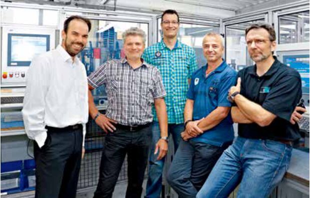Wilm Schadach,倍福萊茵/魯爾區(qū)辦事處;Achim Ihlefeld,Aumat Maschinenbau 公司技術(shù)總監(jiān);Wilka Schließtechnik 公司鑰匙生產(chǎn)主管 Manuel Krümmel 和 電氣維護(hù)經(jīng)理 Mark Straka;以及 AST 公司總經(jīng)理 Wilfried Wengenroth(從左至右) 對(duì)于鑰匙行業(yè)及對(duì)于專營(yíng)鑰匙生產(chǎn)的德國(guó)費(fèi)爾貝特的 Wilka Schliestechnik 公司來說,最典型的特點(diǎn)是每天會(huì)接到大量定制生產(chǎn)訂單。技術(shù)總監(jiān) Olaf Witte 解釋道:“在某種意義上說,我們的批量生產(chǎn)與單件流生產(chǎn)可以完美結(jié)合于一體。一個(gè)訂單可能包含 1000 個(gè)相同類型的產(chǎn)品,但每個(gè)產(chǎn)品又都是不同的 —直到為了某個(gè)備用鑰匙的單一訂單。”Wilka 的生產(chǎn)在結(jié)構(gòu)上具有相應(yīng)的靈活性,擁有多種特種機(jī)床,這些機(jī)床是由德國(guó)佐林根的 Aumat Maschinenbau 公司與烏帕塔爾的系統(tǒng)集成商 AST 公司共同開發(fā)的。