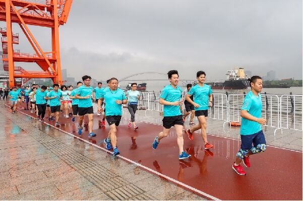 近50名跑者與海洋保護大使在徐匯濱江大道共同完成了5公里的海洋跑活動