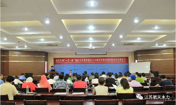 2017年6月30日,“一帶一路”國(guó)家水資源管理及小水電開發(fā)研修班的貴賓在水利部杭州農(nóng)電所領(lǐng)導(dǎo)的陪同下,到江蘇航天水力設(shè)備有限公司考察學(xué)習(xí)。此研修班為商務(wù)部援外項(xiàng)目,有來自朝鮮、阿塞拜疆、阿富汗、亞美尼亞、孟加拉國(guó)、尼泊爾、老撾、多米尼克、蒙古、伊朗、緬甸和埃及等十二個(gè)國(guó)家共四十四位能源領(lǐng)域的官員及技術(shù)人員。其公司黨委書記薛世寬、銷售副總邵春兵和市場(chǎng)總監(jiān)盧燈權(quán)及國(guó)際貿(mào)易部的員工一起參與接待。