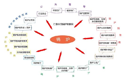 1、鍋爐生態(tài)圈的提出背景 目前國(guó)內(nèi)的傳統(tǒng)鍋爐都是無(wú)物聯(lián)網(wǎng)功能的,單個(gè)運(yùn)行、系統(tǒng)封閉。使用者在運(yùn)營(yíng)中有問(wèn)題難找廠家和專家,人為因素決定鍋爐操作和運(yùn)營(yíng)的好壞,設(shè)備效率、達(dá)標(biāo)運(yùn)行、經(jīng)濟(jì)運(yùn)營(yíng)等受到嚴(yán)重影響。廠家的鍋爐賣出后,管不了使用,也不知道鍋爐運(yùn)行情況,鍋爐出廠后有如風(fēng)箏斷線,售后服務(wù)的成本高、效率低。鍋爐業(yè)界也是各自為陣,封閉分散,業(yè)務(wù)老化且狹窄,競(jìng)爭(zhēng)激烈,同質(zhì)化嚴(yán)重。 南京仁泰法恩電氣有限公司作為工業(yè)鍋爐控制的領(lǐng)軍企業(yè),專注鍋爐控制22年,是中國(guó)工業(yè)鍋爐控制行業(yè)標(biāo)準(zhǔn)的執(zhí)筆起草單位。經(jīng)過(guò)多年對(duì)鍋爐行業(yè)和鍋爐控制的發(fā)展趨勢(shì)的研究,仁泰公司率先提出鍋爐生態(tài)圈的新概念,研發(fā)出仁泰全國(guó)鍋爐物聯(lián)網(wǎng),引領(lǐng)鍋爐控制進(jìn)入網(wǎng)絡(luò)化新時(shí)代。隨著鍋爐生態(tài)圈的構(gòu)建進(jìn)程,上述鍋爐業(yè)界的單個(gè)運(yùn)行的系統(tǒng)性問(wèn)題將會(huì)迎刃而解,并帶來(lái)更多更深和意想不到的新需求、新業(yè)務(wù),給圈內(nèi)企業(yè)帶來(lái)不可估量的機(jī)會(huì),如同現(xiàn)在的手機(jī)支付那樣,這在幾年前還是意想不到的事。 仁泰公司2016年及以前累計(jì)出廠的鍋爐控制器約22萬(wàn)臺(tái),約占2012年我國(guó)在用鍋爐的35%(2012年在用工業(yè)鍋爐為62.4萬(wàn)臺(tái));仁泰2016年當(dāng)年鍋爐廠客戶達(dá)1000多家,具有全國(guó)型鍋爐物聯(lián)網(wǎng)的巨大資源優(yōu)勢(shì)。 2、鍋爐生態(tài)圈的概念 “鍋爐生態(tài)圈”就是以在用鍋爐為中心,以仁泰全國(guó)鍋爐物聯(lián)網(wǎng)為平臺(tái),將全國(guó)有關(guān)鍋爐的操作者、運(yùn)營(yíng)企業(yè)、生產(chǎn)企業(yè)、銷售企業(yè)、燃料企業(yè)、維保服務(wù)企業(yè)、合同能源管理企業(yè)、鍋爐能效管理商,鍋爐節(jié)能減排專家?guī)欤约碍h(huán)保部門,鍋爐監(jiān)管部門,能源部門,行業(yè)協(xié)會(huì),科研單位等聯(lián)接在一起,形成一個(gè)新的跨界融合、共生共贏、節(jié)能環(huán)保、可持續(xù)發(fā)展的鍋爐產(chǎn)業(yè)生態(tài)圈。 鍋爐生態(tài)圈示意圖: