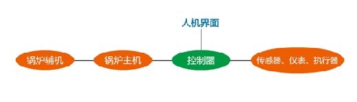 3、傳統(tǒng)鍋爐與生態(tài)圈鍋爐 我們通常所說(shuō)鍋爐,實(shí)際上指的是一個(gè)鍋爐系統(tǒng),而不單單是鍋爐的本體。鍋爐系統(tǒng)通常是由鍋爐主機(jī),鍋爐輔機(jī)(例如燃燒器、水泵、水處理、等等),傳感器,執(zhí)行器和控制器等所組成?刂破魇清仩t系統(tǒng)的中樞。人們?nèi)缫弥仩t的現(xiàn)場(chǎng)信息,必須通過(guò)現(xiàn)場(chǎng)控制器的人機(jī)界面。 傳統(tǒng)鍋爐圖示: