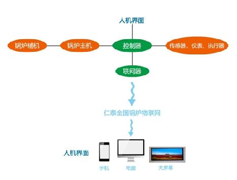 “生態(tài)圈”鍋爐: 在傳統(tǒng)鍋爐的控制器上增加一個(gè)聯(lián)網(wǎng)器,即可實(shí)現(xiàn)鍋爐與仁泰全國(guó)鍋爐物聯(lián)網(wǎng)的聯(lián)網(wǎng),向鍋爐生態(tài)圈內(nèi)的有關(guān)方發(fā)送鍋爐系統(tǒng)信息、接收有關(guān)方的信息,傳統(tǒng)鍋爐即升級(jí)進(jìn)化為“生態(tài)圈”鍋爐(或網(wǎng)絡(luò)鍋爐)。生態(tài)圈鍋爐將傳統(tǒng)鍋爐的人機(jī)界面,從鍋爐使用現(xiàn)場(chǎng)的控制器上面,無(wú)限延伸到手機(jī)、電腦、大屏幕等人機(jī)界面,通過(guò)手機(jī),可以在任何地點(diǎn)、任何時(shí)間得知鍋爐的現(xiàn)場(chǎng)信息,并且與鍋爐生態(tài)圈的有關(guān)方進(jìn)行互動(dòng)。所以生態(tài)圈鍋爐又稱“手機(jī)鍋爐”。