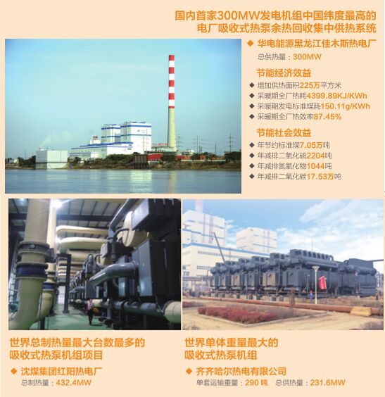 2009年開(kāi)發(fā)全球首個(gè)吸收式熱泵余熱回收制熱系統(tǒng)用戶 有效解決火電廠冷凝熱排空問(wèn)題 低成本解決大面積城市供熱 已有35家電廠使用該系統(tǒng)
