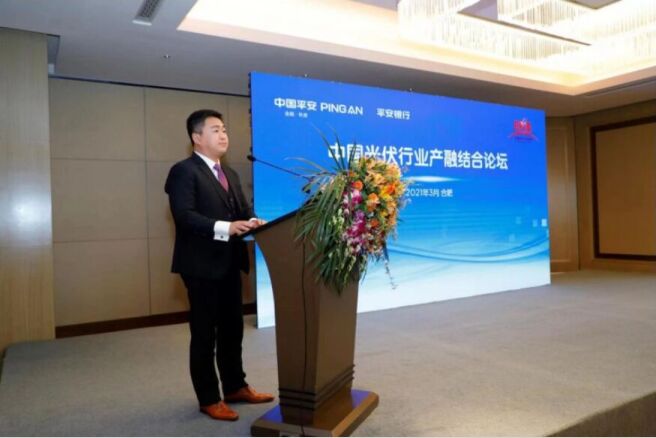 為落實(shí)碳中和戰(zhàn)略、發(fā)力綠色金融,3月19日,平安銀行聯(lián)合中國(guó)光伏行業(yè)協(xié)會(huì)在合肥舉辦中國(guó)光伏行業(yè)產(chǎn)融結(jié)合論壇,并聯(lián)合協(xié)會(huì)和平安證券發(fā)布《中國(guó)光伏行業(yè)分析及圖覽(2021)》。本次會(huì)議,共有來自國(guó)家發(fā)改委、行業(yè)協(xié)會(huì)的專家及來自大唐集團(tuán)、中節(jié)能集團(tuán)、云南能投、阿特斯、陽光電源、天合光能、特變電工、晶科能源、東方日升、通威集團(tuán)等20余家行業(yè)頭部企業(yè)高管參會(huì)。