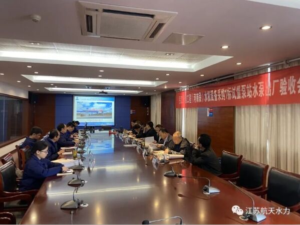 項(xiàng)目驗(yàn)收專題會(huì) 2021年4月14日,河南省引江濟(jì)淮工程有限公司在江蘇航天水力設(shè)備有限公司召開了引江濟(jì)淮工程(河南段)水機(jī)設(shè)備采購(gòu)1標(biāo)試量泵站項(xiàng)目驗(yàn)收專題會(huì)。