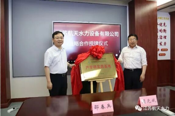 5月28日,江蘇航天水力設(shè)備有限公司產(chǎn)學(xué)研實(shí)踐基地簽約授牌儀式在江蘇省駱運(yùn)水利工程管理處皂河站舉行。