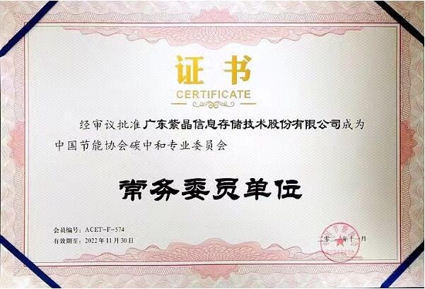 紫晶存儲(chǔ)正式成為“中國(guó)節(jié)能協(xié)會(huì)碳中和委員會(huì)常務(wù)委員單位”