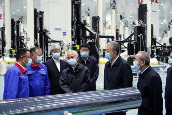 在生產(chǎn)車間,馬培林向楊偉東一行介紹了雙良在節(jié)能環(huán)保、光伏產(chǎn)業(yè)的布局和公司在內(nèi)蒙古自治區(qū)投資情況,對雙良40GW單晶硅項目建設(shè)、生產(chǎn)、運營等方面進行了詳細匯報。