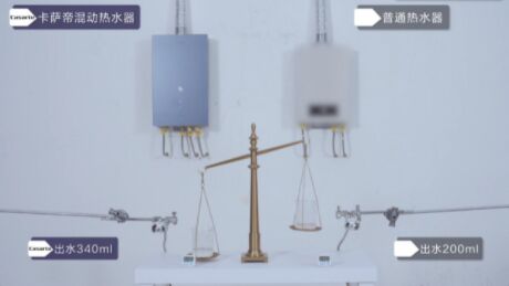面對(duì)這類痛點(diǎn),什么樣的熱水器能夠解決呢?4月22日,卡薩帝官方平臺(tái)發(fā)布一段熱水器天平實(shí)驗(yàn)視頻。視頻顯示,卡薩帝「混動(dòng)」熱水器和普通熱水器在同時(shí)開啟10分鐘后,工作人員用兩個(gè)量杯分別接10s熱水放在天平上?梢姡罢吡勘薪映龅乃慷,天平朝前者傾斜。相同時(shí)間運(yùn)行的熱水器,為什么出水量不同?差別在于兩臺(tái)熱水器的科技不同。