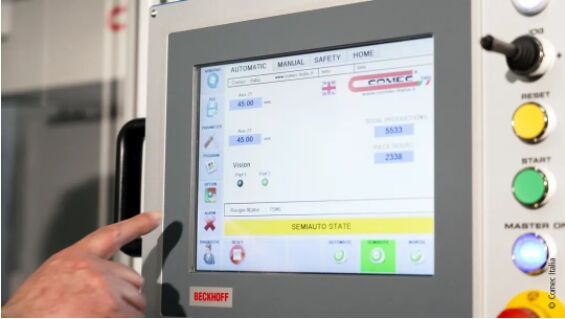 “此外,倍福基于 PC 的標(biāo)準(zhǔn)系統(tǒng)架構(gòu)能夠更加方便地為不同客戶編程和定制接口!盡anuele Baggini 繼續(xù)說(shuō)道。“我們?cè)?15 年前就能夠使用倍福技術(shù)遠(yuǎn)程連接設(shè)備,以便下載數(shù)據(jù)或診斷可能出現(xiàn)的任何問(wèn)題。”Comec Italia 的轉(zhuǎn)印設(shè)備安裝在全球各地,因此從商業(yè)角度來(lái)看,這樣可以帶來(lái)巨大的優(yōu)勢(shì)。Manuele Baggini 認(rèn)為,在人機(jī)界面方面,基于 PC 的控制技術(shù)和最新一代的多點(diǎn)觸控控制面板也幫助客戶優(yōu)化了性能,尤其是為操作帶來(lái)更大的便利性。