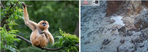 左圖:極瀕危物種海南長臂猿 右圖:紅外相機拍攝到的高原野生雪豹