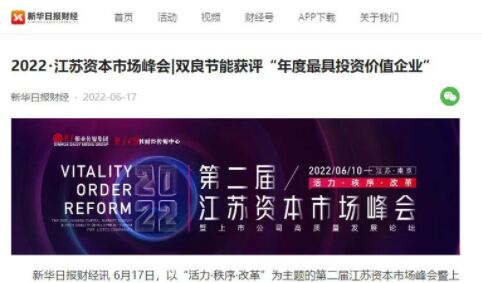 6月17日,以“活力·秩序·改革”為主題的第二屆江蘇資本市場峰會暨上市公司高質(zhì)量發(fā)展論壇在南京召開。頒獎典禮上,雙良節(jié)能榮獲“2022年度最具投資價(jià)值企業(yè)”。