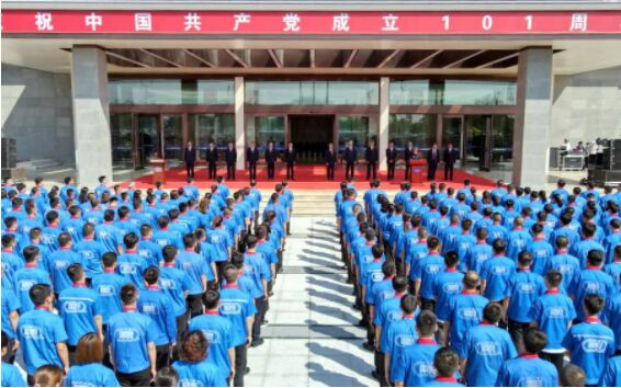 7月1日上午,伴著雄渾壯麗的國歌,迎著燦爛初升的朝陽,一面五星紅旗在雙良硅材料(包頭)有限公司新落成的辦公大樓廣場前冉冉升起,這是雙良紀念中國共產(chǎn)黨成立101周年的慶;顒,也是慶祝雙良40GW單晶硅項目一期20GW產(chǎn)能全面達產(chǎn)的活動。出席活動的有:雙良集團董事局主席繆雙大、副主席江榮方,董事長繆文彬、總裁馬培林、黨委書記繆志強等董事會全體領(lǐng)導(dǎo),以及集團各職能部門、各大產(chǎn)業(yè)板塊總經(jīng)理,此外還有雙良硅材料(包頭)有限公司、雙良銷售團隊以及中化三建等參建單位的代表。