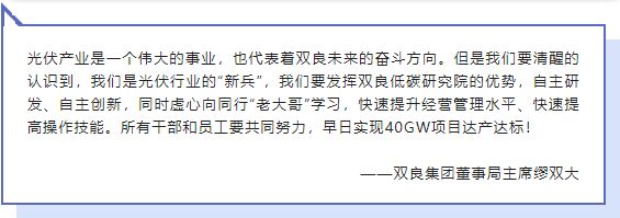 “雙碳”目標下,可再生能源的發(fā)展已升至戰(zhàn)略高度,在國家政策持續(xù)發(fā)力與新技術(shù)不斷涌現(xiàn)的背景下,我國光伏行業(yè)迎來高速發(fā)展期。面向未來,雙良將緊抓機遇,堅持“健康、穩(wěn)定、可持續(xù)發(fā)展”理念,推動光伏新能源產(chǎn)業(yè)穩(wěn)步發(fā)展,打造“世界級清潔能源解決方案提供商”,為“雙碳”目標的實現(xiàn)貢獻企業(yè)力量,向著“健康雙良,國際雙良,始終做一家受人尊敬的企業(yè)集團”的愿景不斷進發(fā)。